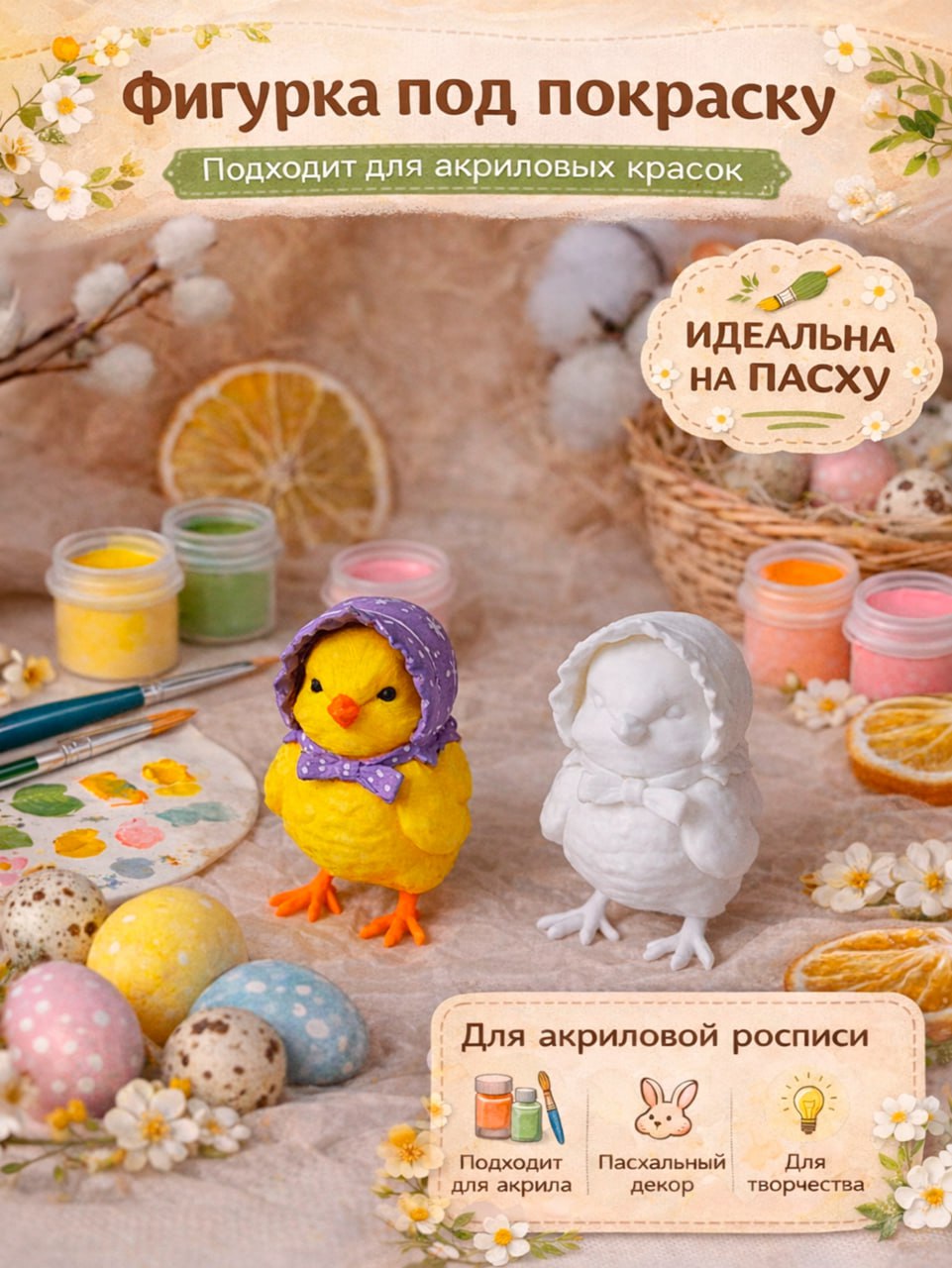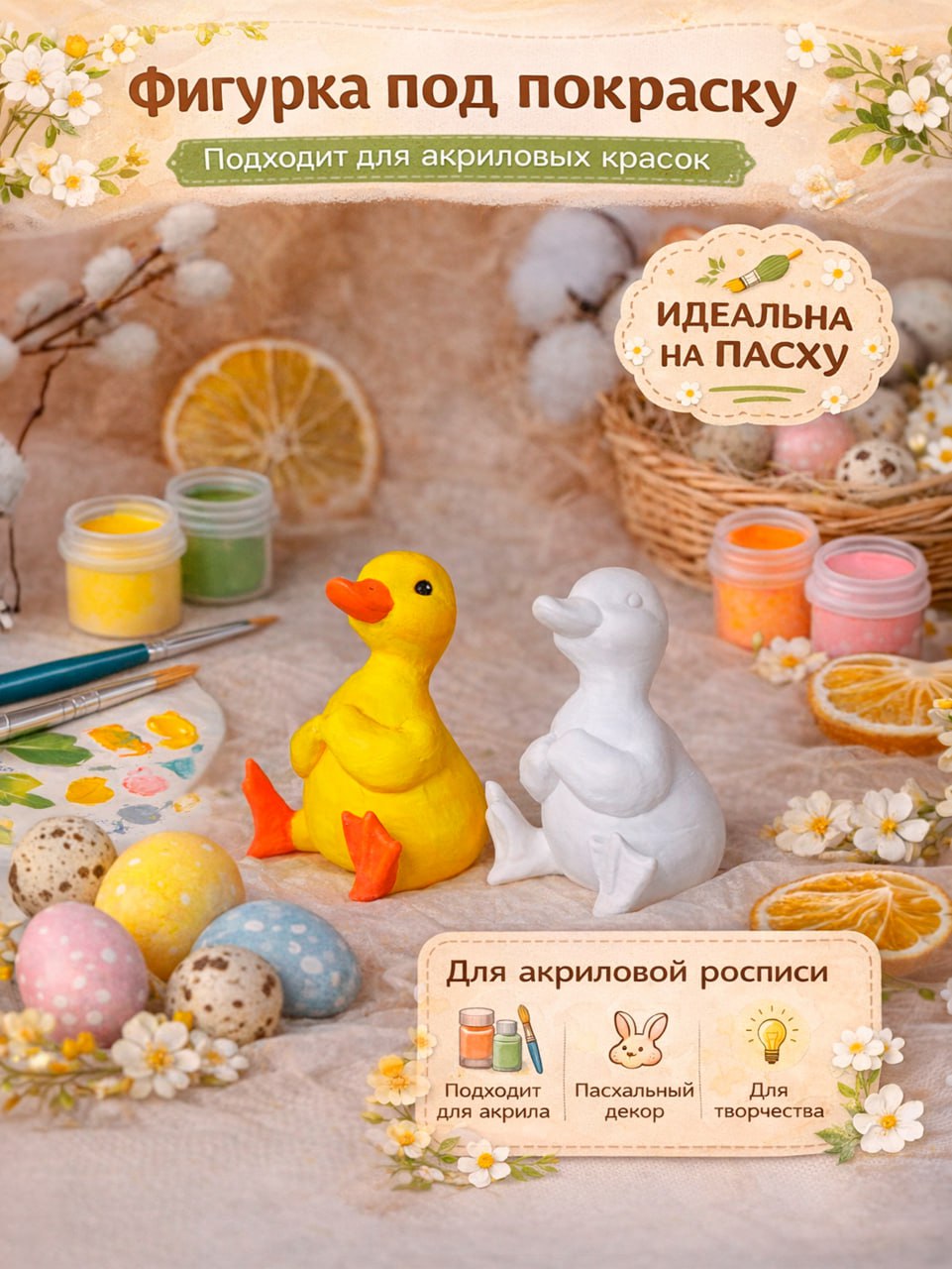 Такая заготовка отлично подходит для творческих занятий детей и взрослых, семейных мастер-классов и подготовки праздничного пасхального декора. После раскрашивания фигурка превращается в оригинальное украшение интерьера или памятный сувенир.