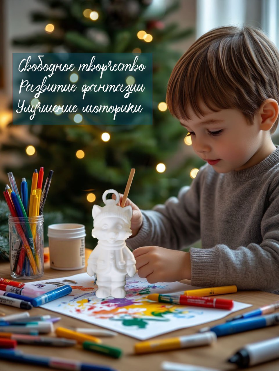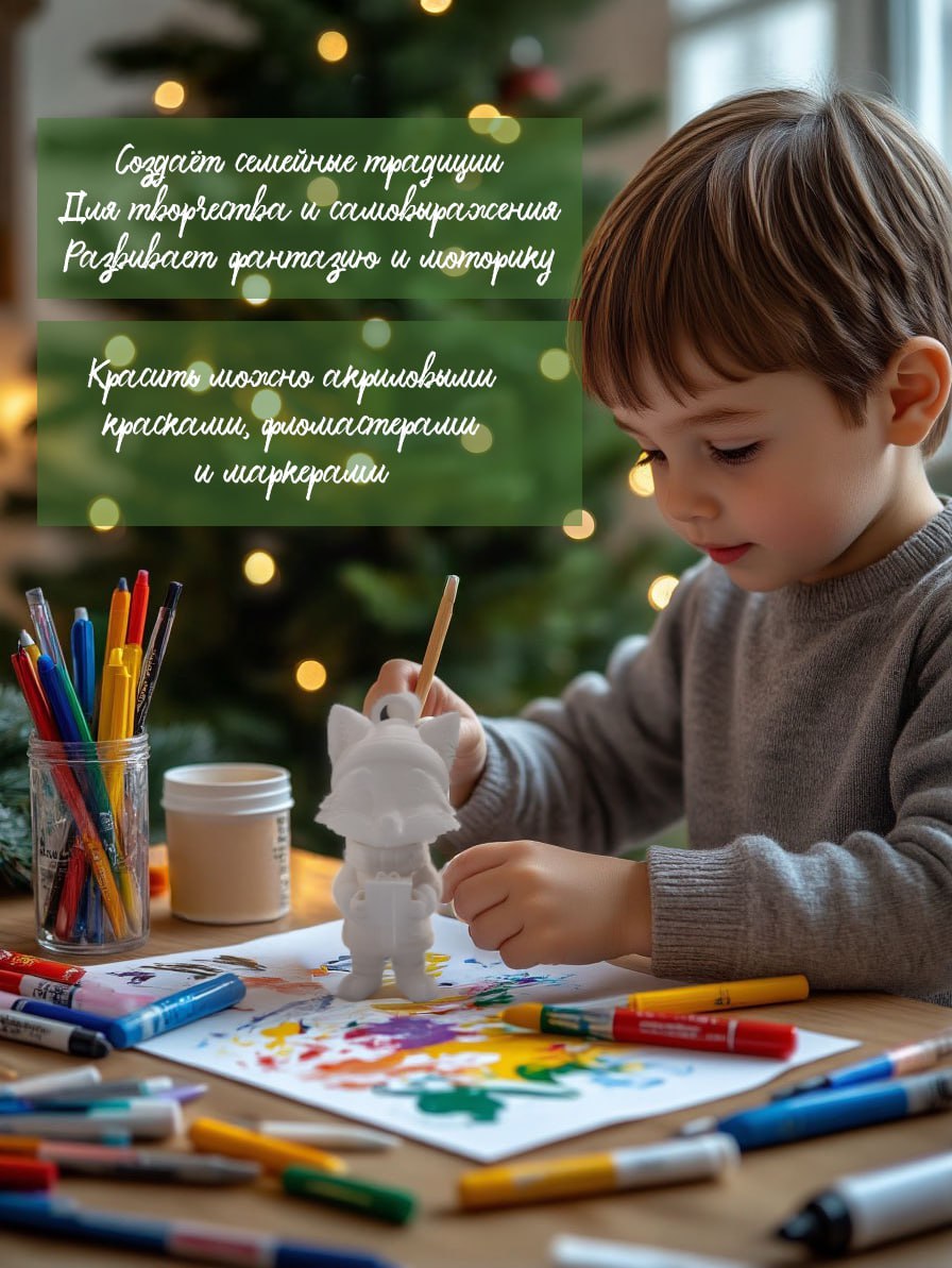 Каждый ребёнок сможет раскрасить фигурку акриловыми красками, фломастерами или маркерами, создавая свой уникальный шедевр. Так рождаются игрушки с душой — с детскими отпечатками, первыми рисунками и добрыми воспоминаниями, которые будут радовать вас из года в год.